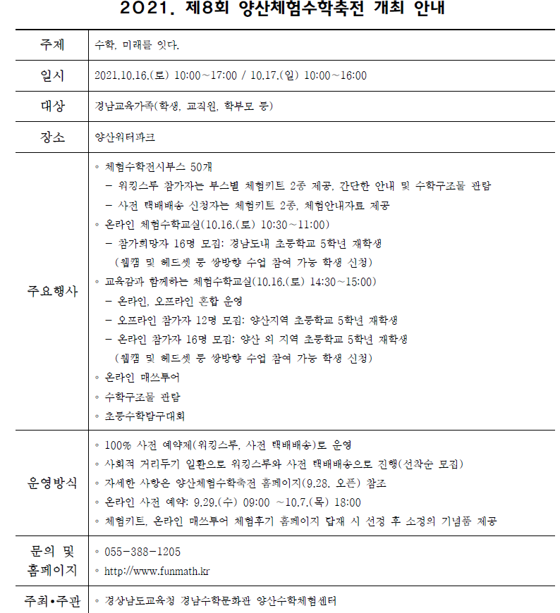 2021. 제8회 양산체험수학축전 안내